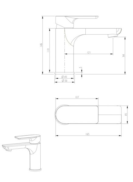 • Высота смесителя: