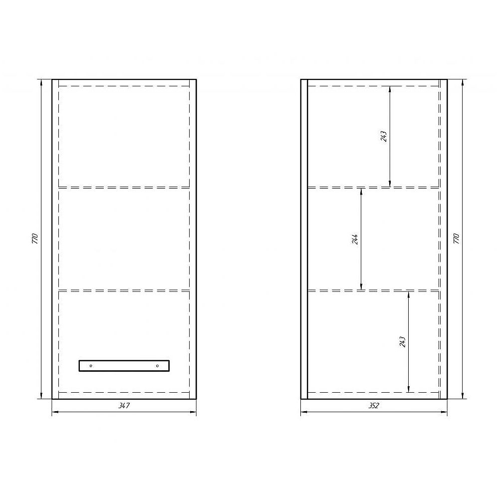 Полупенал для коллекций Alfa, Almi. Фасад белый лак МДФ. Стеклянные полки. Подвесной.