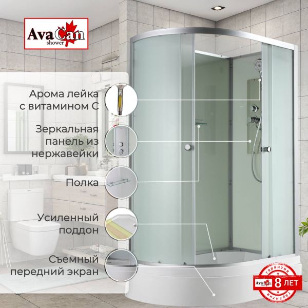 Стильная душевая кабина AvaCan D3012R N сочетает в себе высокую функциональность, практичность и надежность. При изготовлении применяется безопасное закаленное стекло толщиной 4 мм (матовое), надежно фиксируемое алюминиевым профилем. Сборка без силикона (увеличивает срок службы), внутренняя сборка (облегчает установку ,ревизию, позволяет установить душевую кабину в ограниченном пространстве, в том числе в нишу),смеситель резьбовой (без хомутов). Съемный экран поддона (позволяет осуществлять ревизию сифона). Цвет профиля матовый хром. Двойные металлические ролики дверей (увеличивают срок службы). В комплекте: душевая штанга, полочка, арома-лейка с витамином С (картридж съемный).