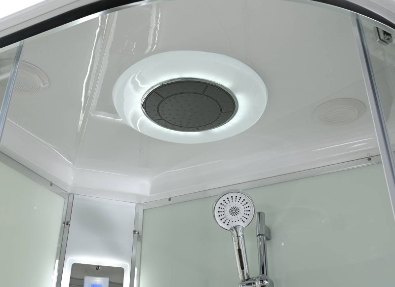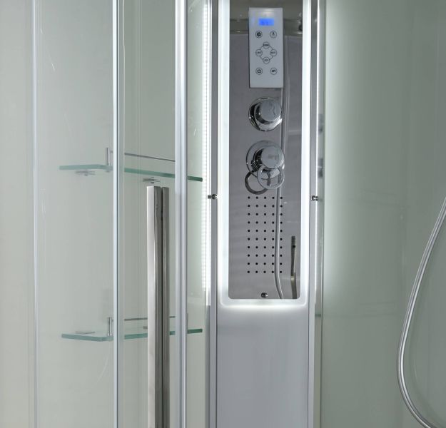 Стильная душевая кабина AvaCan EM2811LLEDT сочетает в себе высокую функциональность, практичность и надежность. При изготовлении применяется безопасное закаленное стекло толщиной 5 мм (прозрачное), надежно фиксируемое алюминиевым профилем. Сборка без силикона (увеличивает срок службы), внутренняя сборка(облегчает установку и ревизию; позволяет установить в ограниченном пространстве), смеситель резьбовой (без хомутов). Съемный экран поддона (позволяет осуществлять ревизию сифона). Цвет профиля  хром. Двойные металлические ролики дверей (увеличивают срок службы).В комплекте : душевая штанга, две полочки , тропический (верхний) душ, арома-лейка с витамином С (картридж съемный),полимерная вставка в поддон(имитация дерева),сифон, ручки дверей из нержавейки , двойные ролики ,пульт сенсорный(Блютуз ,LED подсветка ,радио ,вытяжка),гидромассаж спины.