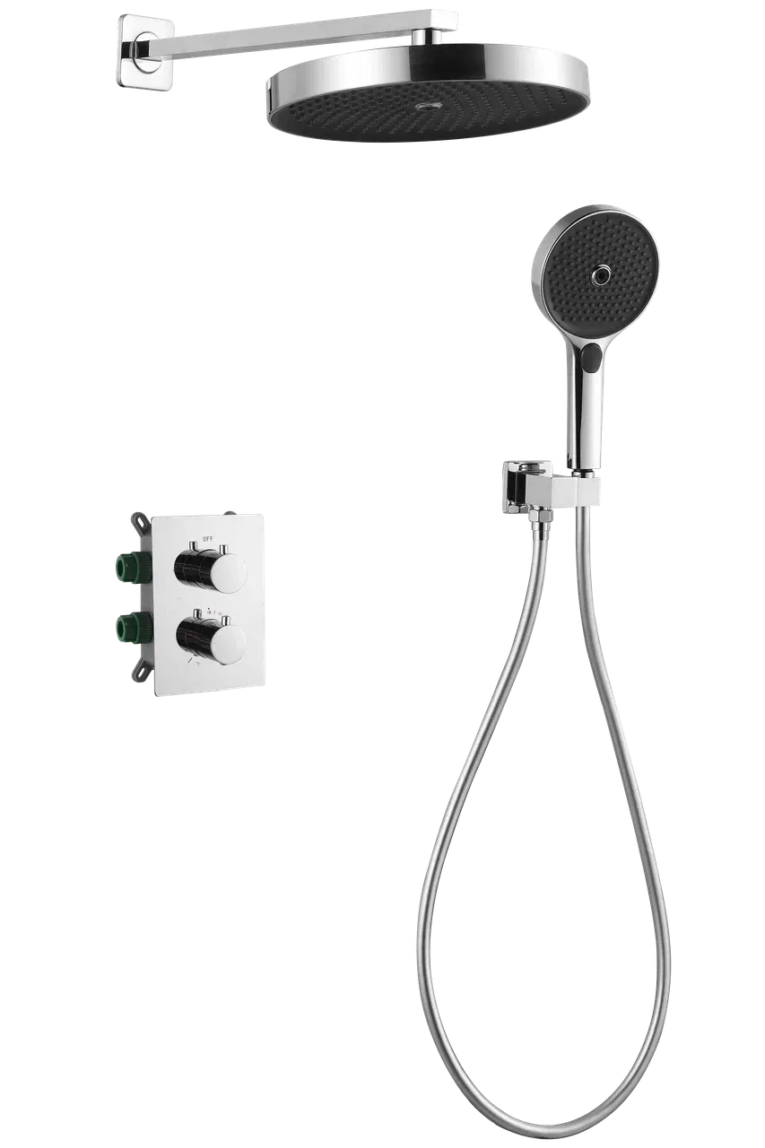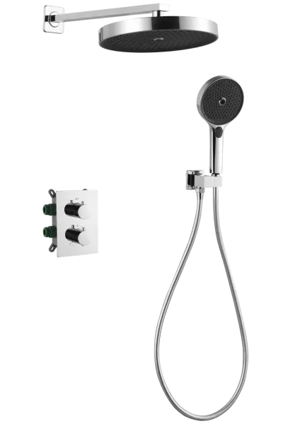 Хотите создать в ванной комнате атмосферу роскоши? Душевая система Thermosta – это идеальный выбор. Черный матовый корпус и большой квадратный верхний душ из нержавеющей стали придают ей современный и стильный вид. Термостат обеспечивает точное поддержание заданной температуры воды, а скрытый аэратор создает мягкий и приятный поток.