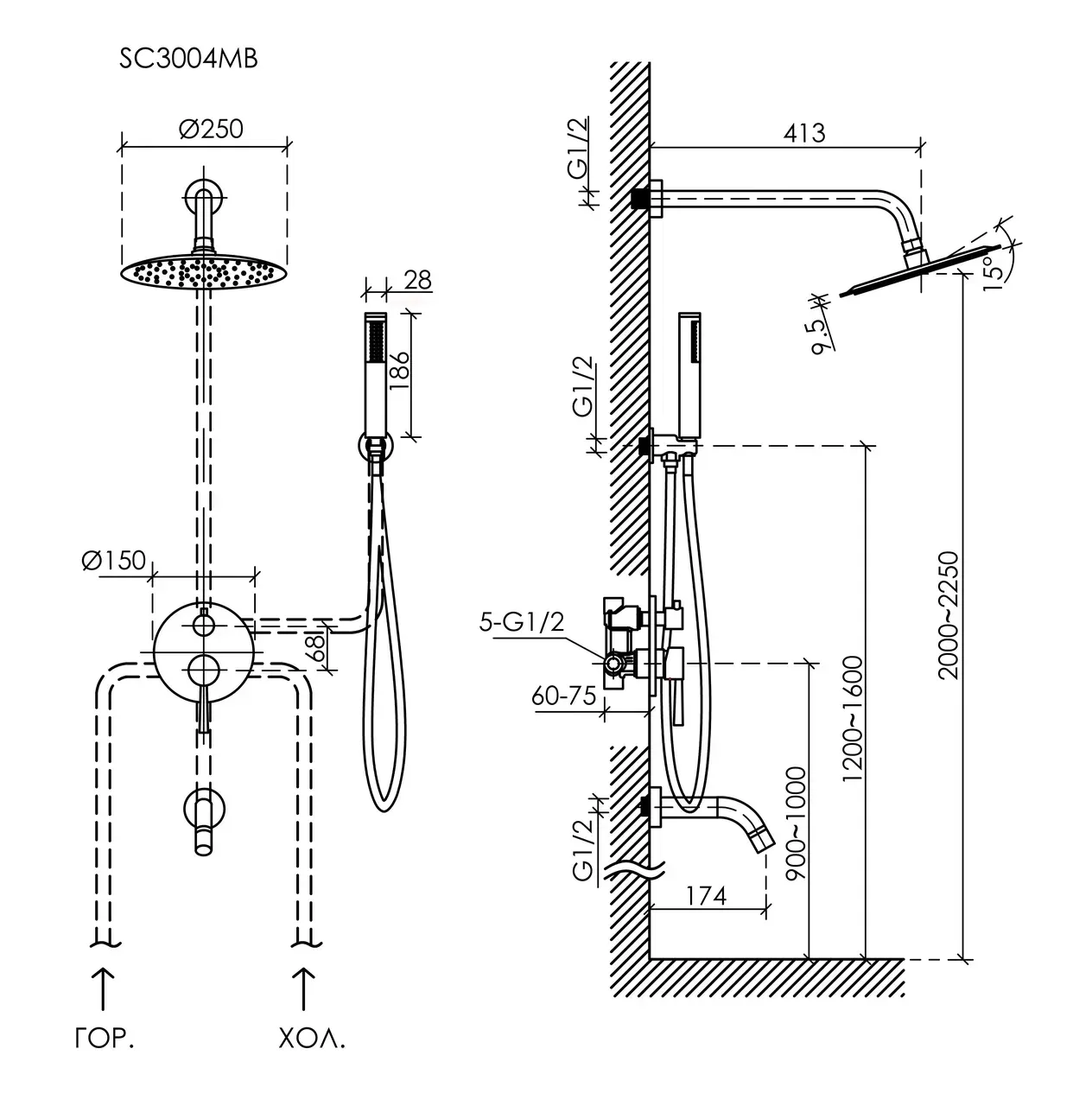 • Размер ручного душа, см: