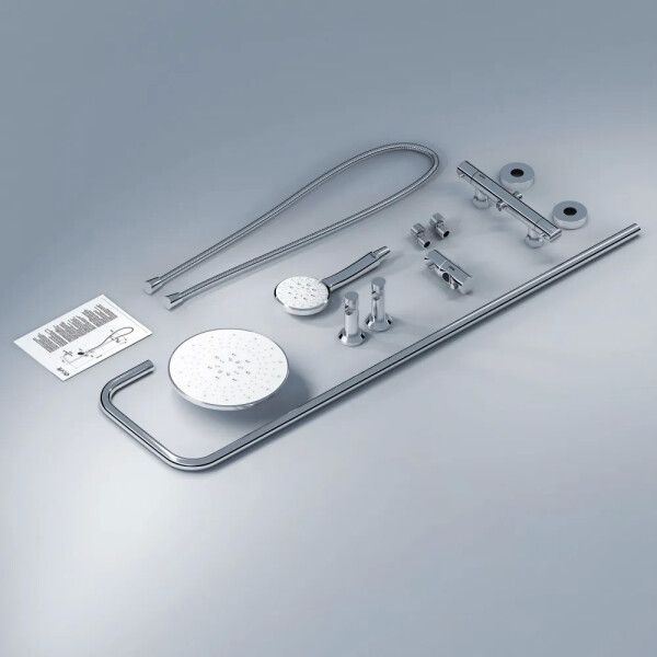 Душевая система Dorff New plus D0710400. Душевая система и смеситель для ванны и душа c термостатом по привлекательной цене. Душевая система Futura с тропическим душем, ручным душем с 3 функциями и длинным шлангом в 1500 мм - просто находка в своем сегменте. А стойки возможностью регулировки по высоте и шланги с защитой от перекручивания станут приятным бонусом для тех, кто ценит эргономичность и функциональность.Термостат душевых систем в элегантных современных размерах предотвратит от ожогов собрал в себе лучшие немецкие качества: стильный дизайн, компактные размеры, европейское качество, прочность и долговечность.Материал латунь, ПВХ (поливинилхлорид), нержавеющая сталь Количество режимов струи1УправлениеТермостатРазмер лейки, мм110Число монтажных отверстий4Стандарт подводки1/2"Количество потребителей2Назначение прибораДля ванны, Для душаВес с упаковкой, г2650Состав набора: Вентиль, Верхний душ, Держатель для лейки, Душевая лейка, Душевая штанга, Кронштейн для верхнего душа, Смеситель, Шланг для душаВнешнее исполнениеФорма душаКруглаяМонтажНа потолок, На стенуПоверхность изделияГлянцеваяСтильСовременныйИсполнение изливаМонолитный, С режимом "душ"Особенности: Защита от скручивания, Регулировка угла наклона, Автоматический девиатор, Ограничитель температурыДополнительныеТипДушевой комплектБрендDorffАртикулD0710400Страна-изготовительГерманияГарантия5 летЦветСеребристый хром