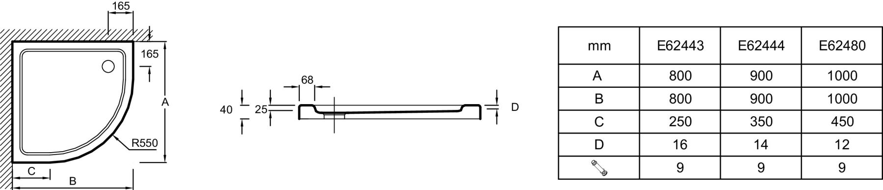 Душевой поддон Jacob Delafon FLIGHT E62444-00 90*90