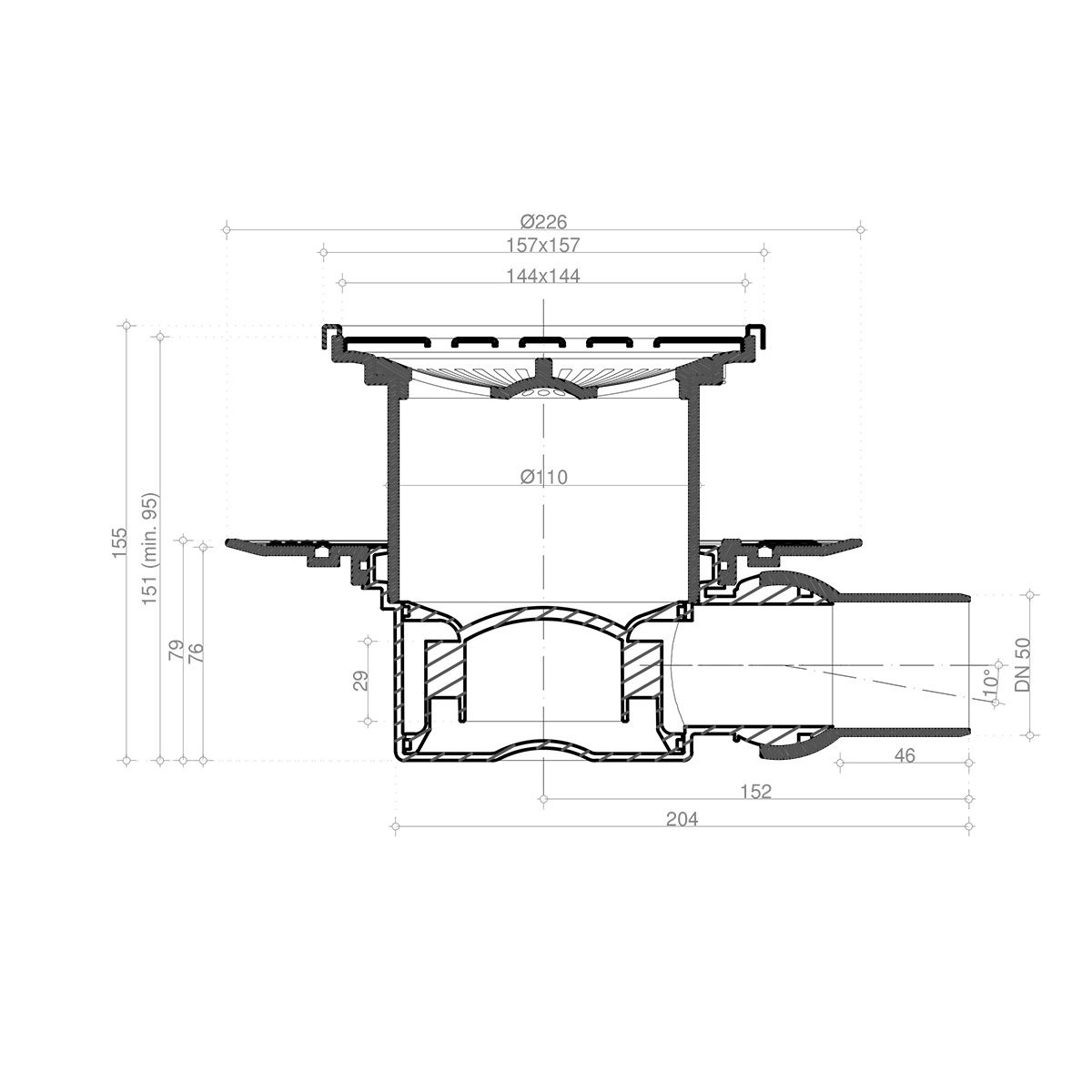 "Решетка: металл с перфорацией "Хром глянец". Базы: 1 - с 1 выходом, 4- S-образный сифон. Материалы: решетка - нержавеющая сталь AISI 304 SS, корпус, сифон - PP. Размеры решетки 100х100 мм и 150х150 мм, пропускная способность 48 л/мин, D=50 мм, поворот базы 360°, минимальная высота монтажа - 78 мм (для базы 2,3), 69 мм (для базы VERTICAL), гидрозатвор. Mask - с рамкой"