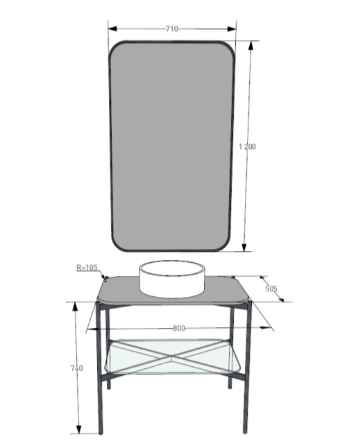 Консоль, предназначенная для установки накладных раковин из ассортимента Salini, изготовлена из металла, выполнена в благородном матовом чёрном цвете.
