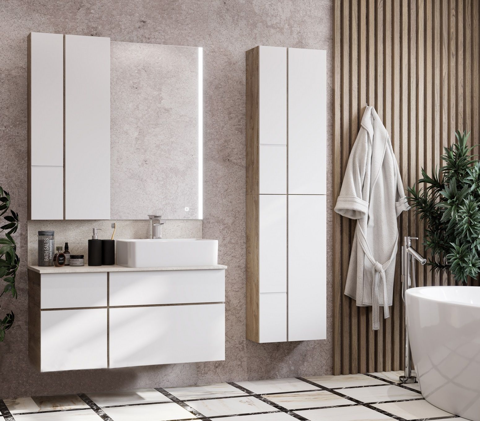 Модуль Акватон Мишель 43см дуб эндгрейн/белый 1A244203MIX40