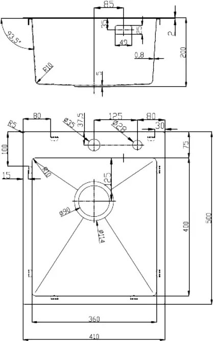 - Отверстия под смеситель:2