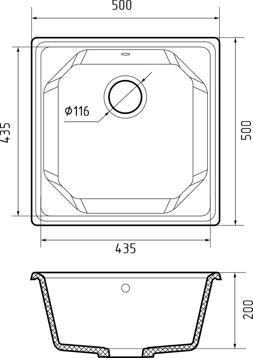 Размер чаши: 435 * 435 * 200 мм