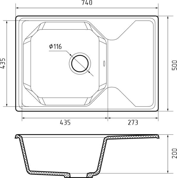 Общий размер: 740 * 500 мм