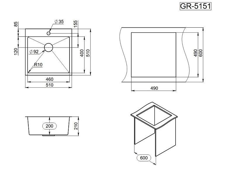 Мойка кухонная Granula 5151, ГРАФИТ МАТОВЫЙ