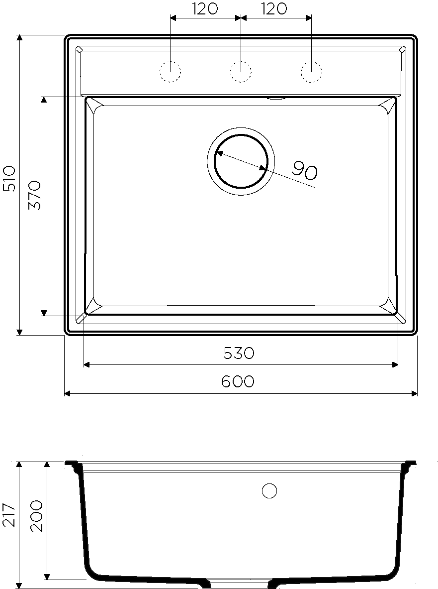 - Отверстия под смеситель:нет