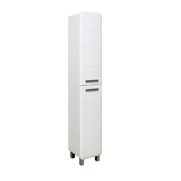 Шкаф-колонна напольный универсальный с двумя распашными дверками. В верхнем и нижнем отделениях - по две внутренние полки. Петли со встроенным доводчиком. Ручки- 2шт, ножки хром - 2 шт, ножки пластик - 2шт.