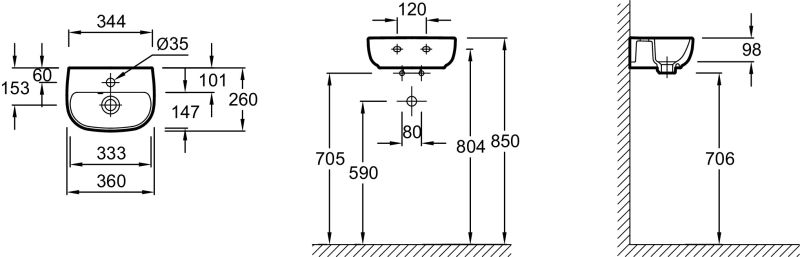 • Отверстия под смеситель: