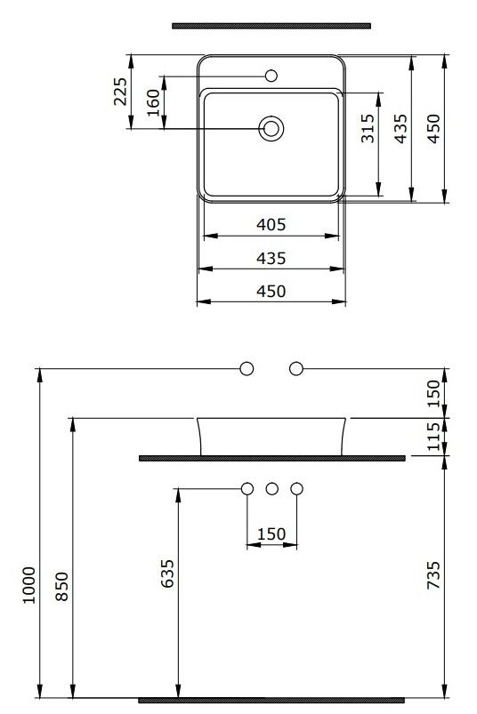 • Отверстия под смеситель: