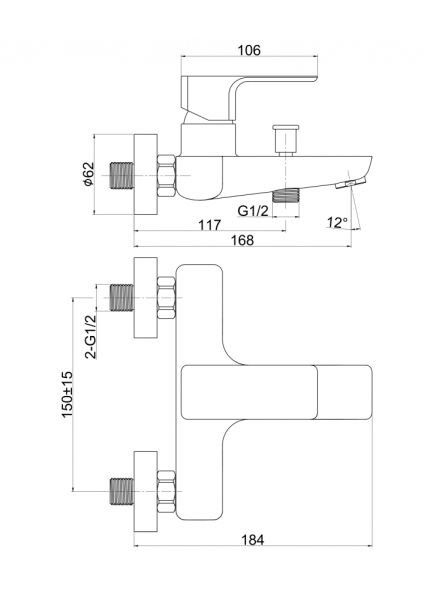 Смеситель Cersanit GEO 63040 для ванны и душа