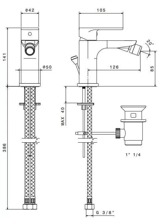 69325KM.21.018 Смеситель для биде PIANO однорычажный с донным клапаном, хром глянец