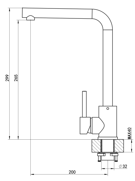 • Высота смесителя:
