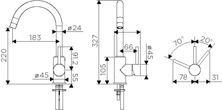 - Высота смесителя:32.7