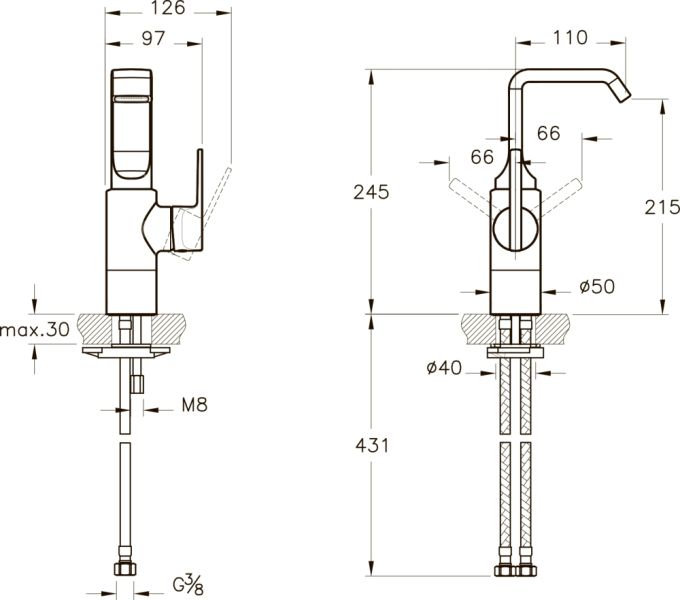- Высота смесителя:24.5
