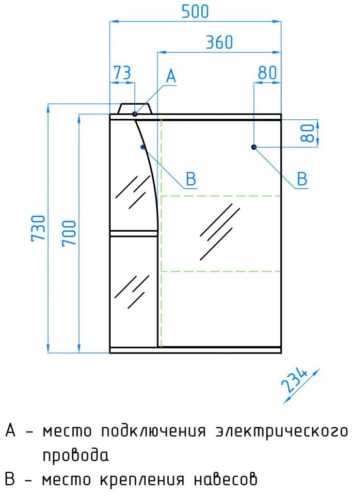 - Тип:зеркало-шкаф с подсветкой