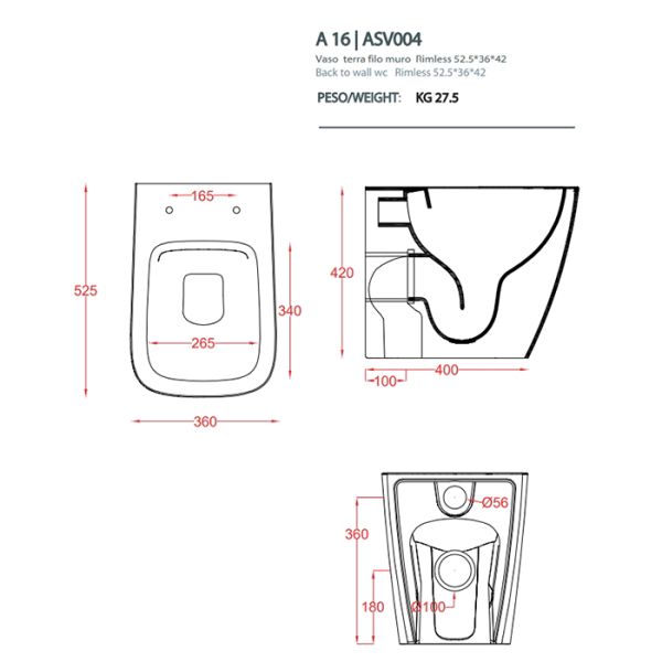 Унитаз Artceram A16 ASV004 41 00 matera materaArtceram A16 Унитаз напольный, 52,5х36см, безободковый, слив универсальный, с крепежом, цвет: matera