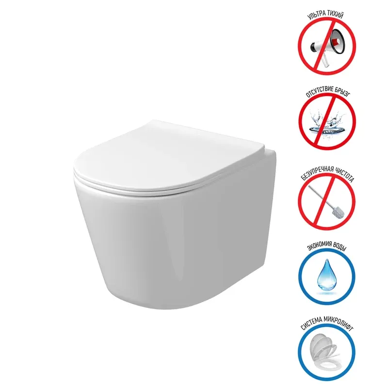 - Безободковый: чаша без труднодоступных мест для уборки, полностью омывается водой