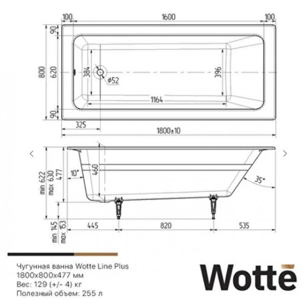 Ванна чугунная Wotte Line Plus 180x80