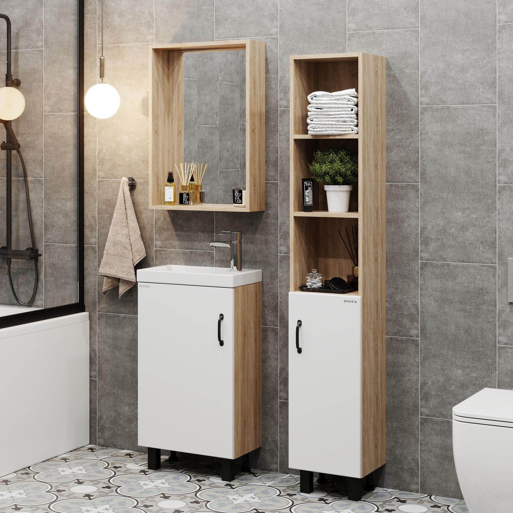 Зеркало в ванную комнату Onika ТИМБЕР 48 отражает современные тенденции в дизайне мебели для ванных комнат: минимализм с простыми и понятными формами, цвета дуба с роскошной текстурой, отсутствие лишних деталей.